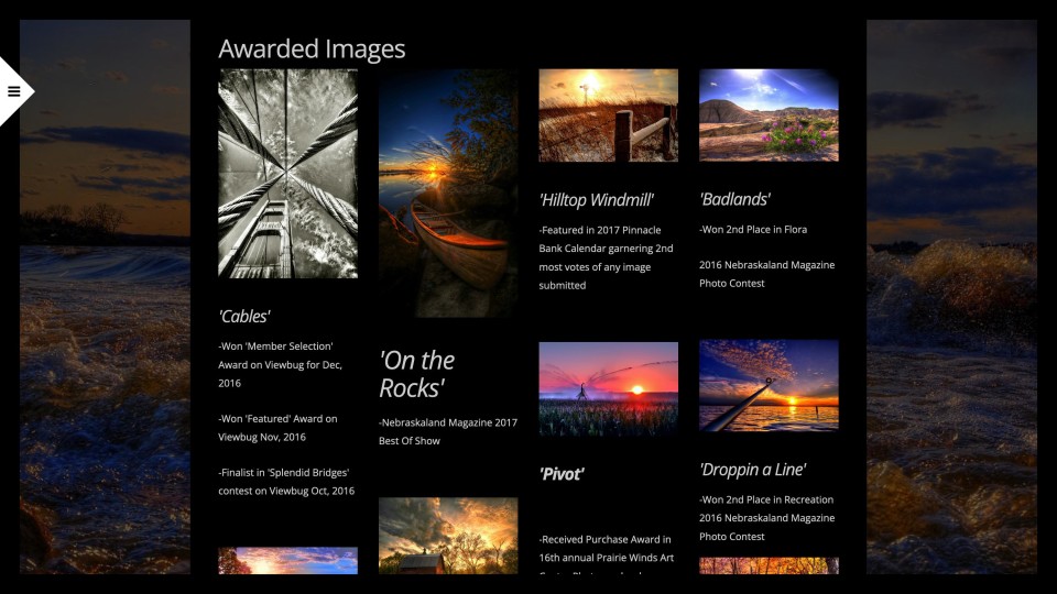 “The Amsterdam format works well as it provides a number of different galleries to showcase my images. Most of all it’s intuitive and easy to maintain from the backend.”